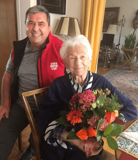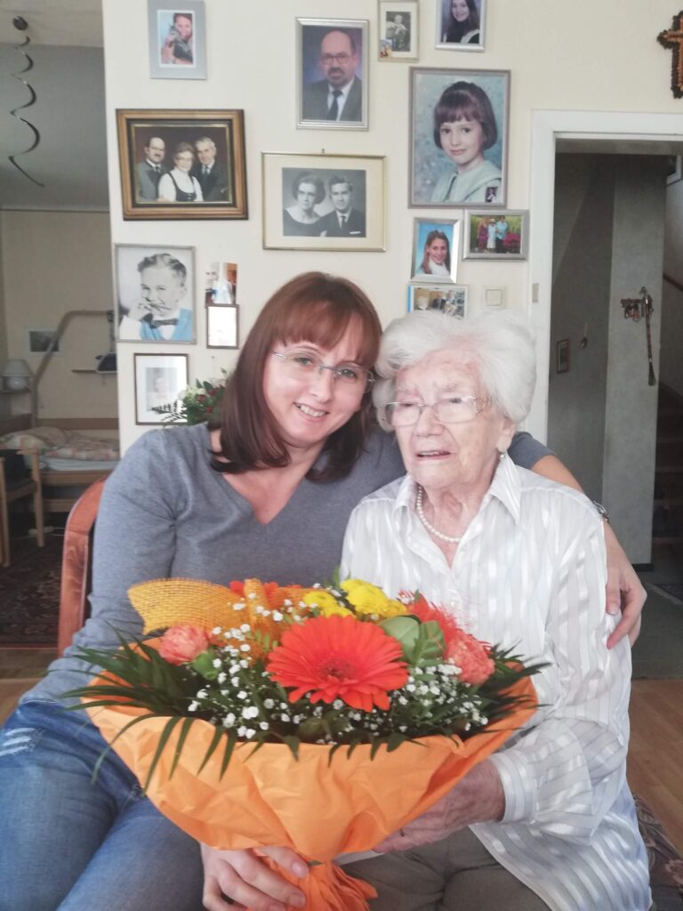 Seit 8 Jahren von cura domo bestens betreut, feiert Frau Eva Hermine S. gemeinsam mit ihrer Betreuerin Brigitte den 100