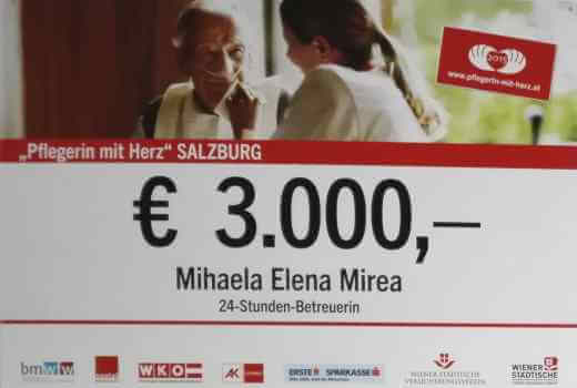 Auch 2017 konnte eine unserer Betreuerinnen die begehrte Auszeichnung „Pflegerin mit Herz“ gewinnen. Diesmal Fr. Florentina Mioara Palaloga für Salzburg.