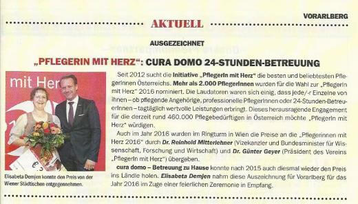 Diesmal ging der Preis ins Ländle an unsere Betreuerin Fr. Elisabeta Demjen! Auch das Vorarlberger Pensionisten-Verbands-Magazin würdigt in der März