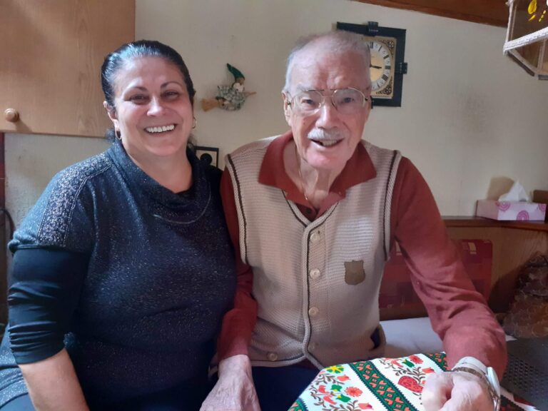 Frau N. feiert Ihren 99. Geburtstag mit ihrer Lieblingsbetreuerin. Unser Regionalleiter und das Team von cura domo wünschen Frau N.