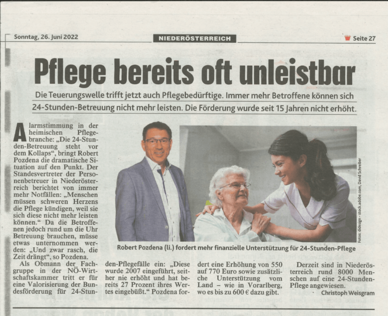 Krone Artikel – ‚Pflege bereits oft unleistbar‘